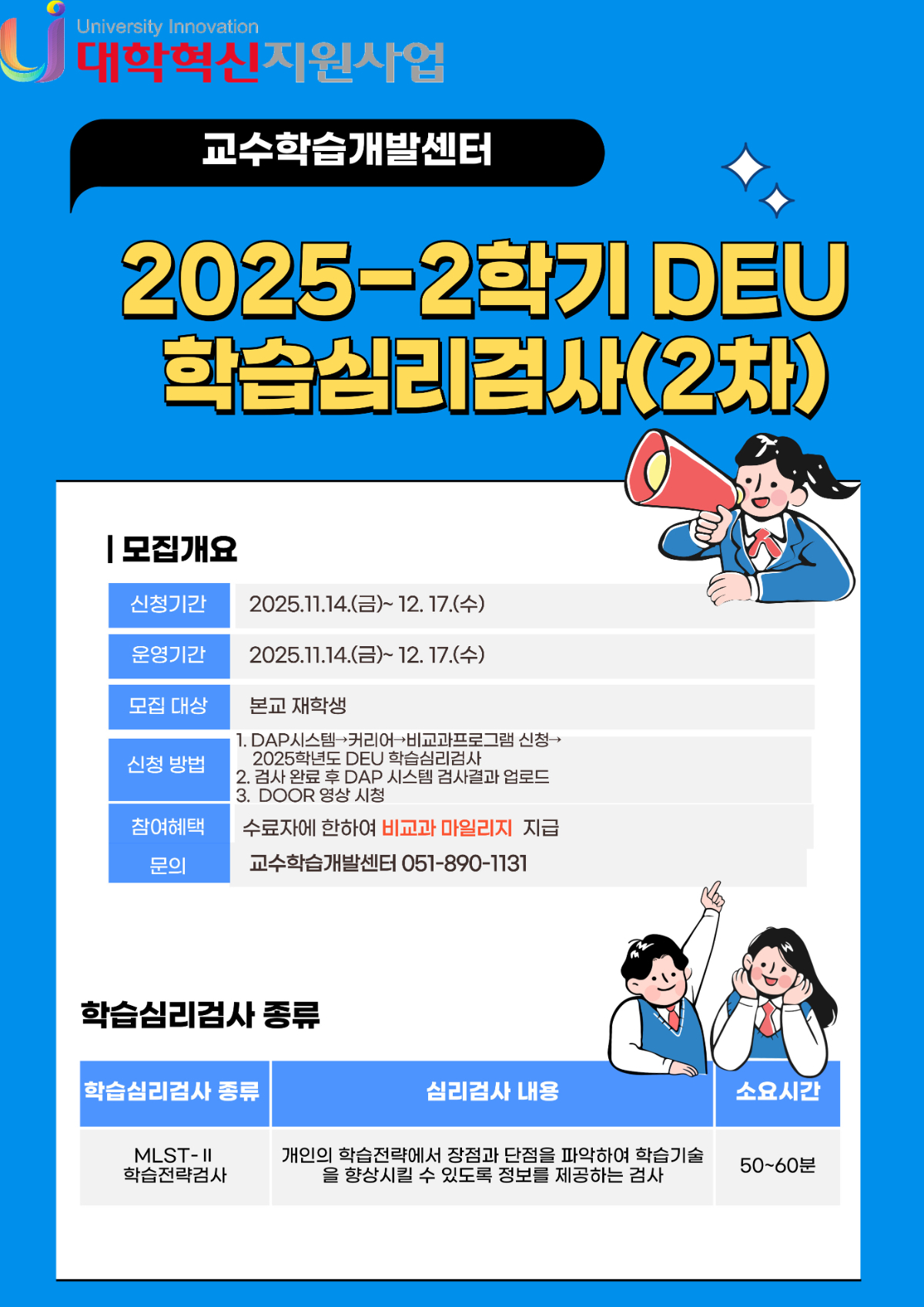 [대학혁신지원사업] 2025-2학기 DEU 학습심리검사 신청 안내(2차)