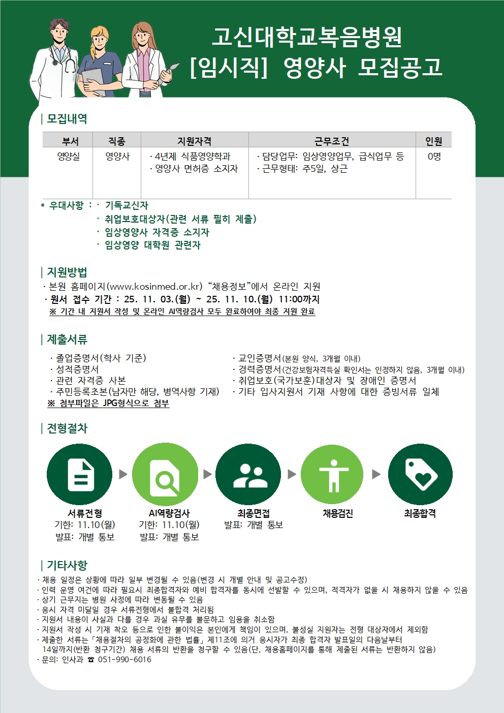 [취업] 고신대학교 복음병원 영양사 모집공고
