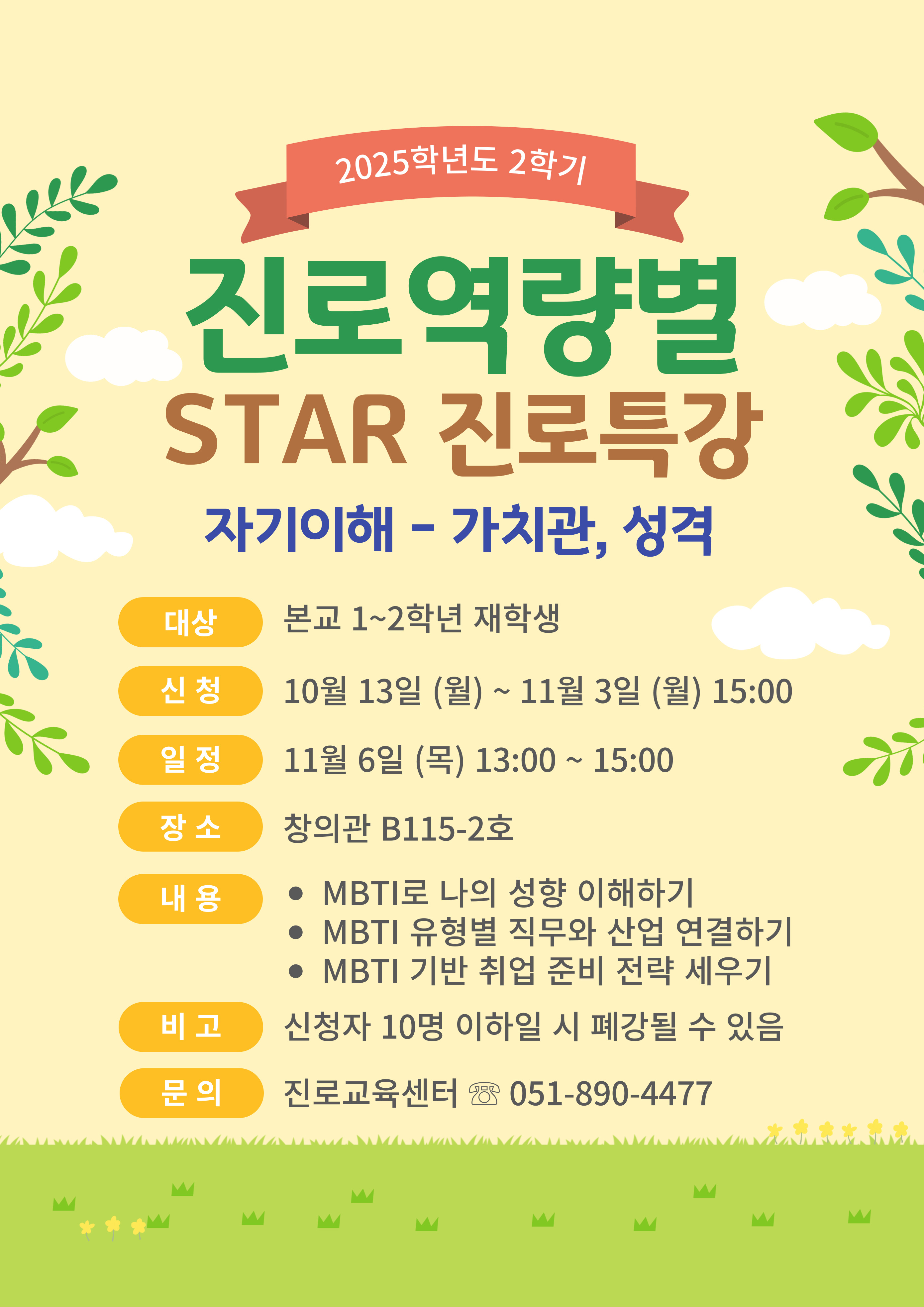 [재학생맞춤형고용서비스사업/국고-빌드업] 2025학년도 2학기 진로역량별 STAR 진로특강 운영 안내