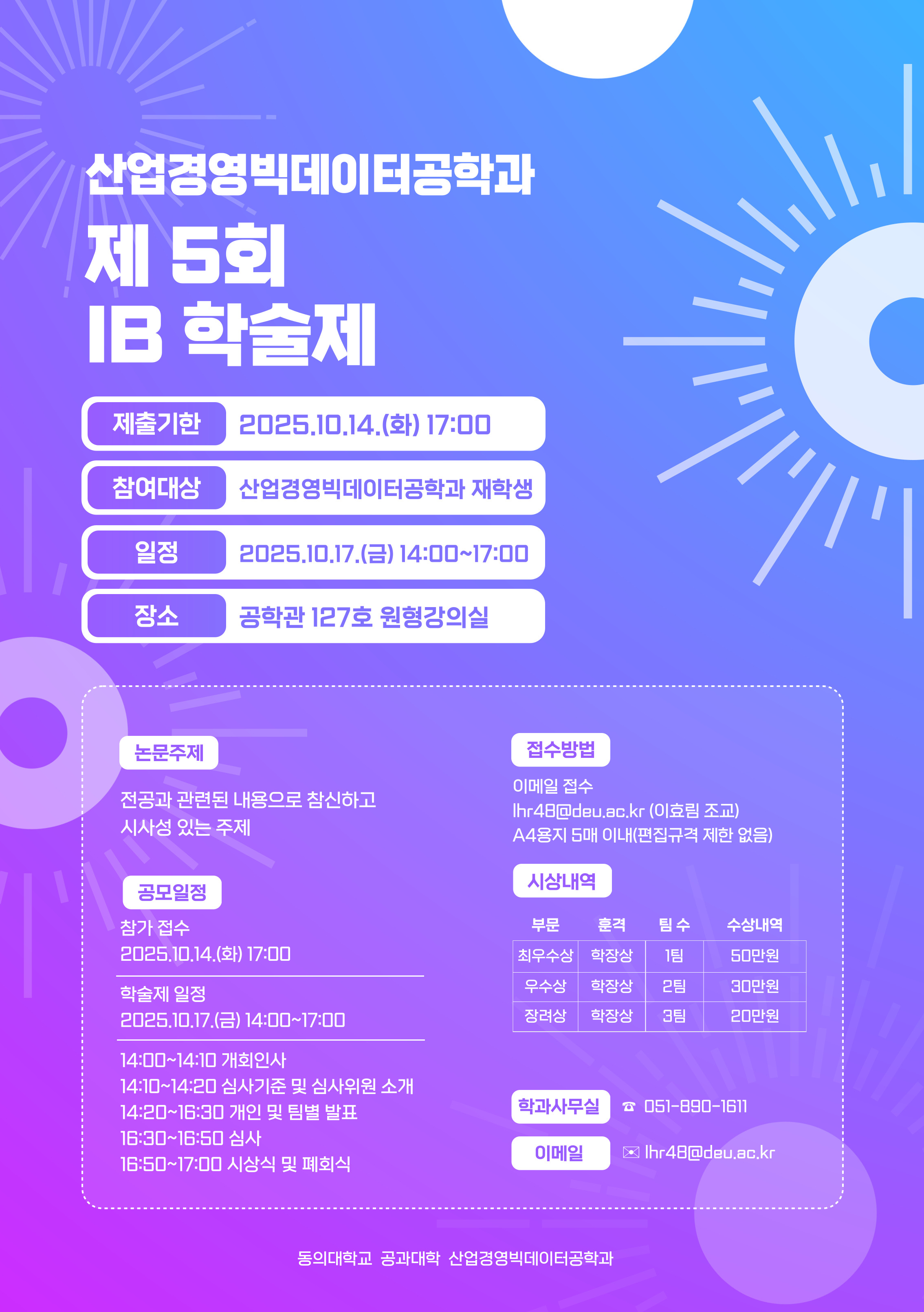 산업경영빅데이터공학과 제 5회 IB 학술제