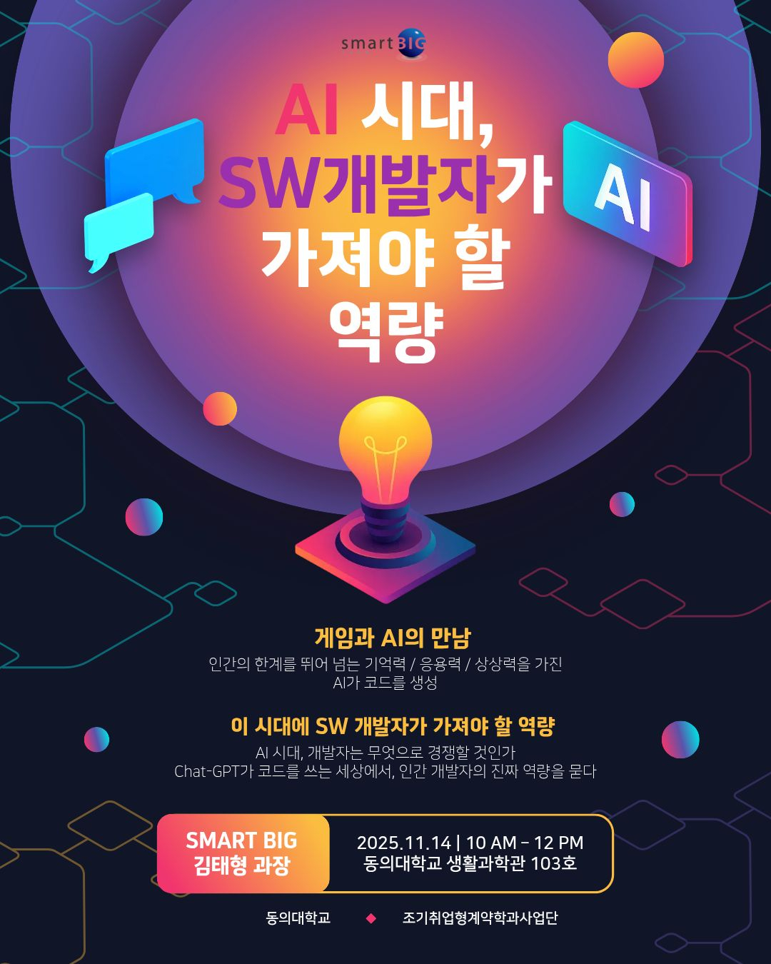[조기취업형계약학과사업] 2025-2학기 소프트웨어융합학과 기업체 특강_(주)스마트빅 김태형 과장(25.11.14)